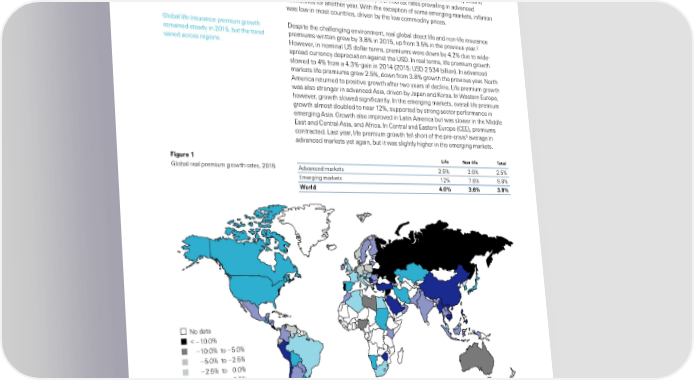 Executive summary The insurance industry aced another The re/insurance industry aced another year o moderate global economic growth 1 challenging year in 201‰ with moderate in 201… lobal real gross domestic product †€‡ grew by 2…ˆ… The advanced economic growth and low interest rates… economies improved‰ but there was slowdown in the emerging marets with many maŠor countries impacted by political instability and low commodity prices… The investment environment remained challenging globally‰ with uncertainty around policy tightening in the ‹„ and very low interest rates prevailing in advanced economies or another year… Œith the exception o some emerging marets‰ inlation was low in most countries‰ driven by the low commodity prices… lobal lie insurance premium growth espite the challenging environment‰ real global direct lie and nonŽlie insurance premiums written grew by 3…ˆ in 201‰ up rom 3…ˆ in the previous year…2 remained steady in 201‰ but the trend varied across regions… ‘owever‰ in nominal ‹„ dollar terms‰ premiums were down by ’…2ˆ due to wideŽ spread currency depreciation against the ‹„… n real terms‰ lie premium growth slowed to ’ˆ rom a ’…3ˆŽgain in 201’ †201“ ‹„ 2 3’ billion‡… n advanced marets lie premiums grew 2…ˆ‰ down rom 3…ˆ growth the previous year… North merica returned to positive growth ater two years o decline… ”ie premium growth was also stronger in advanced sia‰ driven by •apan and –orea… n Œestern Europe‰ however‰ growth slowed signiicantly… n the emerging marets‰ overall lie premium growth almost doubled to near 12ˆ‰ supported by strong sector perormance in emerging sia… rowth also improved in ”atin merica but was slower in the ‚iddle East and —entral sia‰ and rica… n —entral and Eastern Europe †—EE‡‰ premiums contracted… ”ast year‰ lie premium growth ell short o the preŽcrisis3 average in advanced marets yet again‰ but it was slightly higher in the emerging marets… Figure 1 Life Non-life Total lobal real premium growth rates‰ 201 dvanced marets 2…ˆ 2…6ˆ 2…ˆ Emerging marets 12ˆ ƒ…ˆ ¡…ˆ World 4.0 . . No data < –10.0% –10.0% to –5.0% –5.0% to –2.5% –2.5% to 0.0% 0.0% to 2.5% 2.5% to 5.0% 5.0% to 10.0% > 10.0% „ource“ „wiss ˜e Economic ˜esearch ™ —onsulting… 1 The aggregation o the individual economies that mae up the global economy is weighted using ‹„ dollar € based on maret exchange rates… nternational statistics using purchasingŽpower parity place more weight on astŽgrowing countries lie —hina and ndia and so show higher world € growth rates… 2 ‹nless otherwise stated‰ all premium growth rates indicate changes in real terms †ie‰ adŠusted or local consumer price inlation‡… 3 €reŽcrisis“ 2003–200ƒŸ postŽcrisis“ 200¡–201’… Swiss Re sigma No 3/2016 1